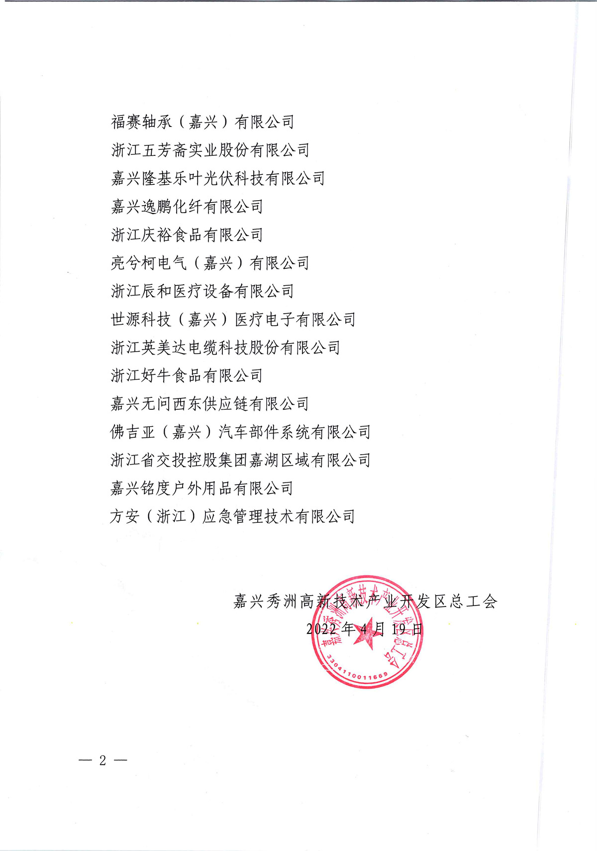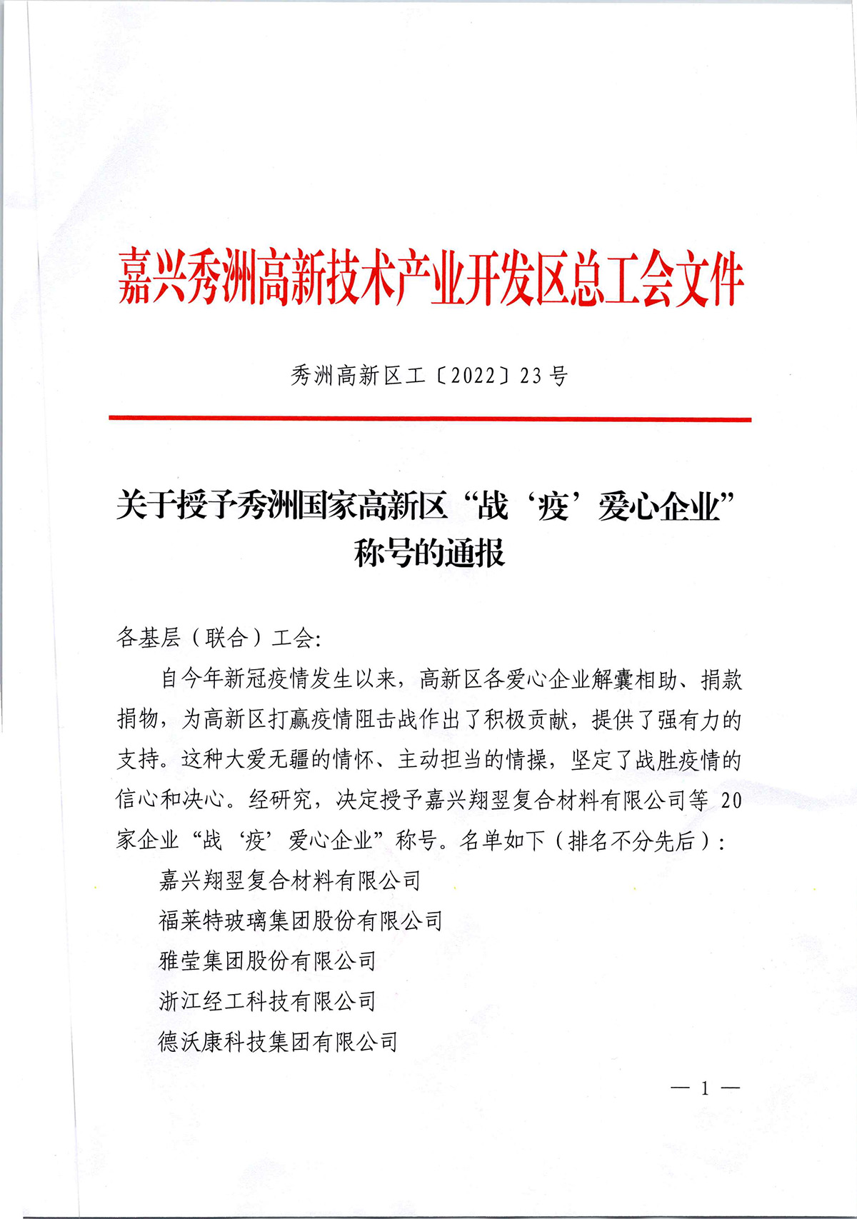 嘉興秀洲國(guó)家高新區(qū)授予“戰(zhàn)‘疫’愛(ài)心企業(yè)”稱號(hào)